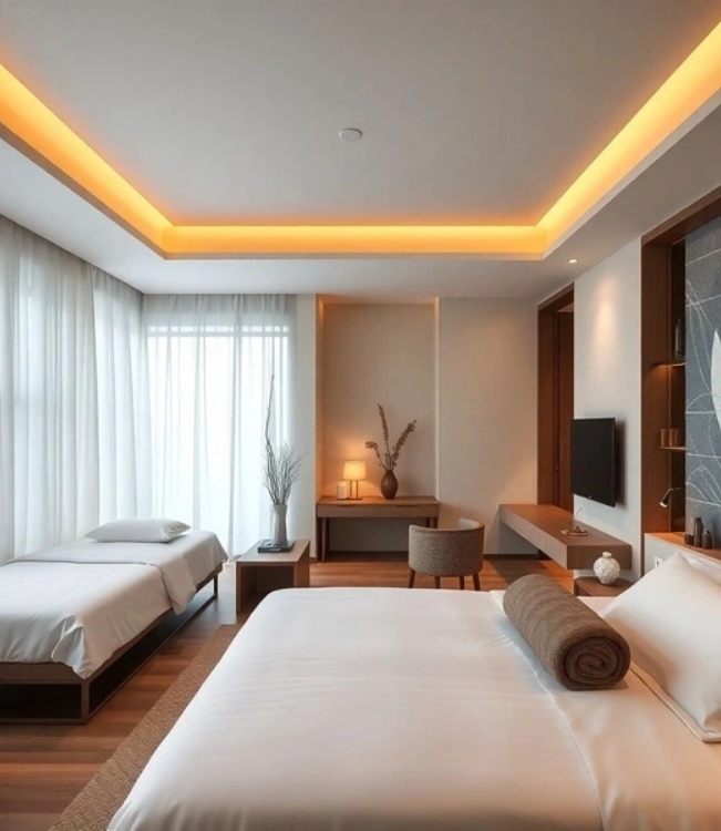 Suítes com uma ou duas camas, TV e estrutura completa para quem participa dos programas. Conforto e silêncio no tratamento.