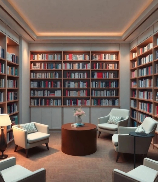 Espaço para leitura, aprendizado e reflexão, com livros voltados à saúde, longevidade e espiritualidade.