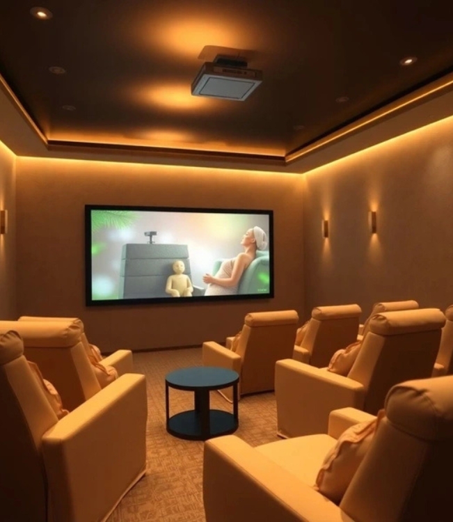 Salas específicas para técnicas de relaxamento profundo, drenagem, liberação emocional e equilíbrio muscular e nervoso.