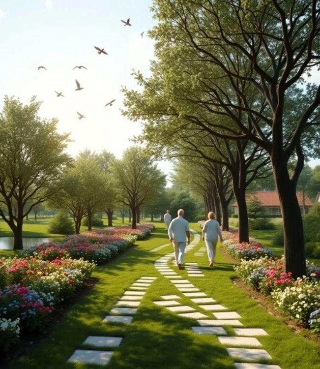 Espaço ao ar livre para relaxamento, conexão com a natureza e recuperação emocional.